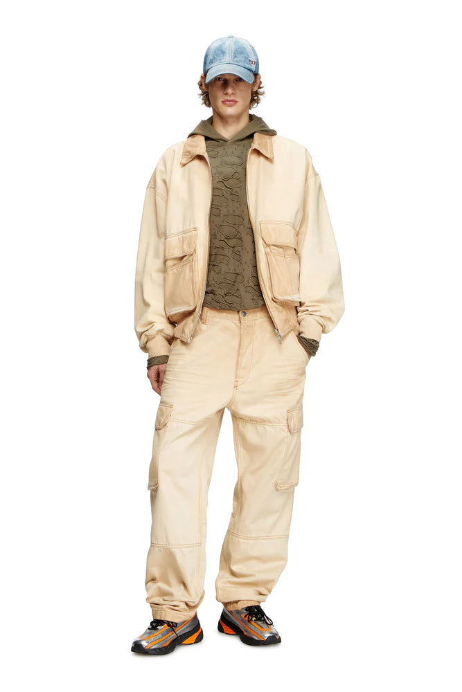Channelling a utilitarian attitude that's integral to Diesel's DNA, this ecru wash is crafted from premium batavia-weave denim with a particularly smooth, compact feel. The fabric is treated with resin for a three-dimensional effect, then dyed inside-out for the colour to penetrate the fabric in a unique way, subtly highlighting the seams and stitching. A slightly darker beige spray lends depth to the final look.