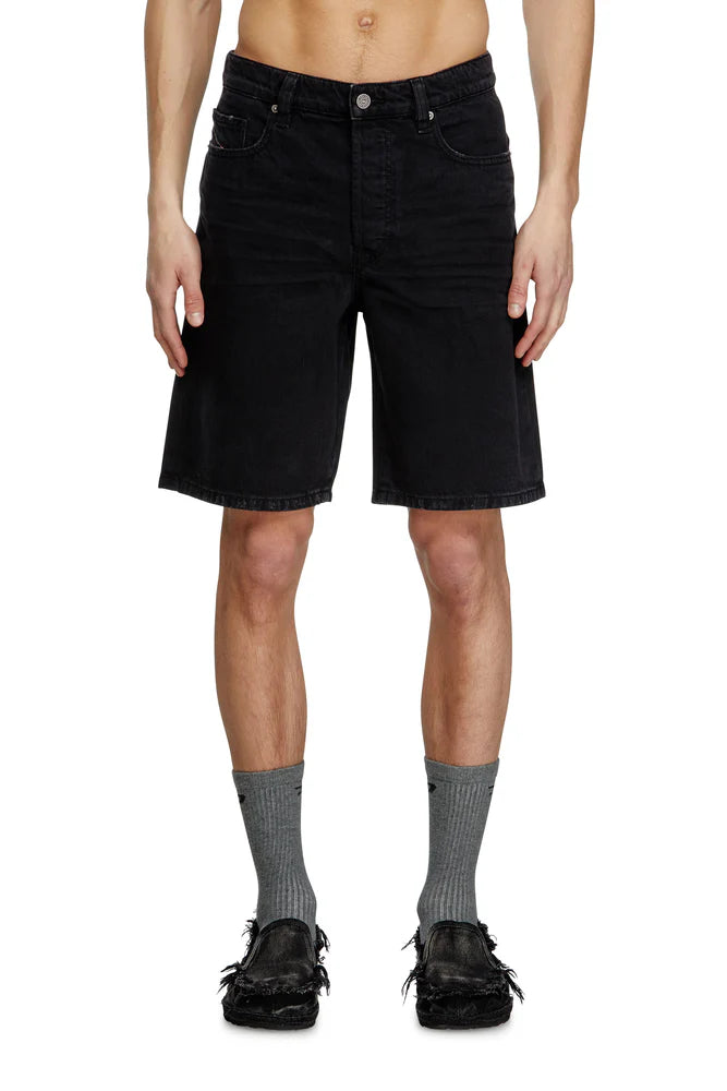 Men's five-pocket shorts with a regular waist and straight leg, cut to knee length. The style is crafted from fix denim, featuring a percentage of recycled cotton, in a clean black wash.